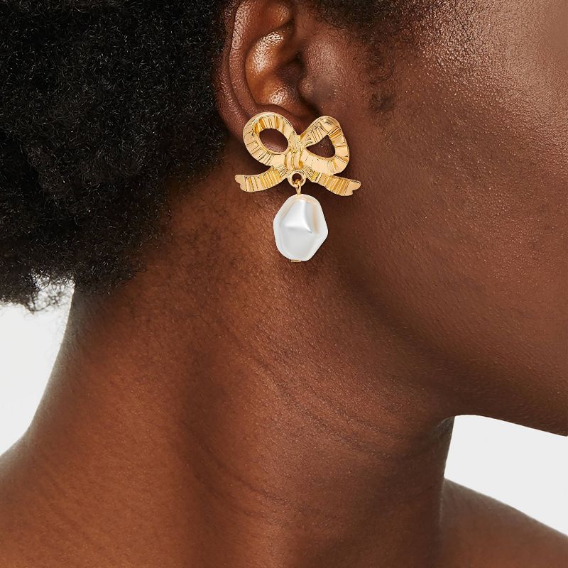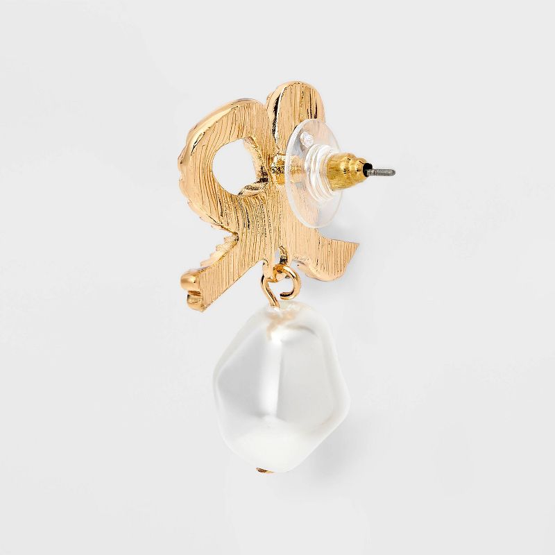 Pearl Dangle and Bow Earrings - A New Day™ Gold/Pearl