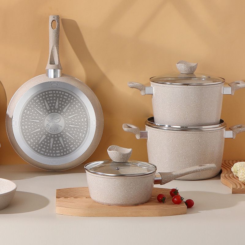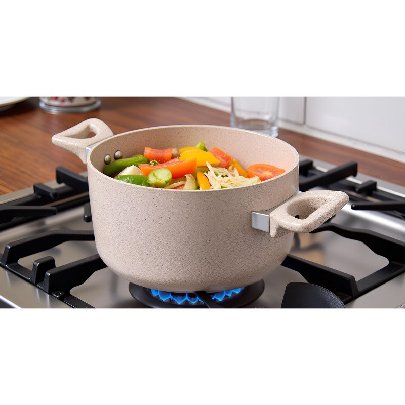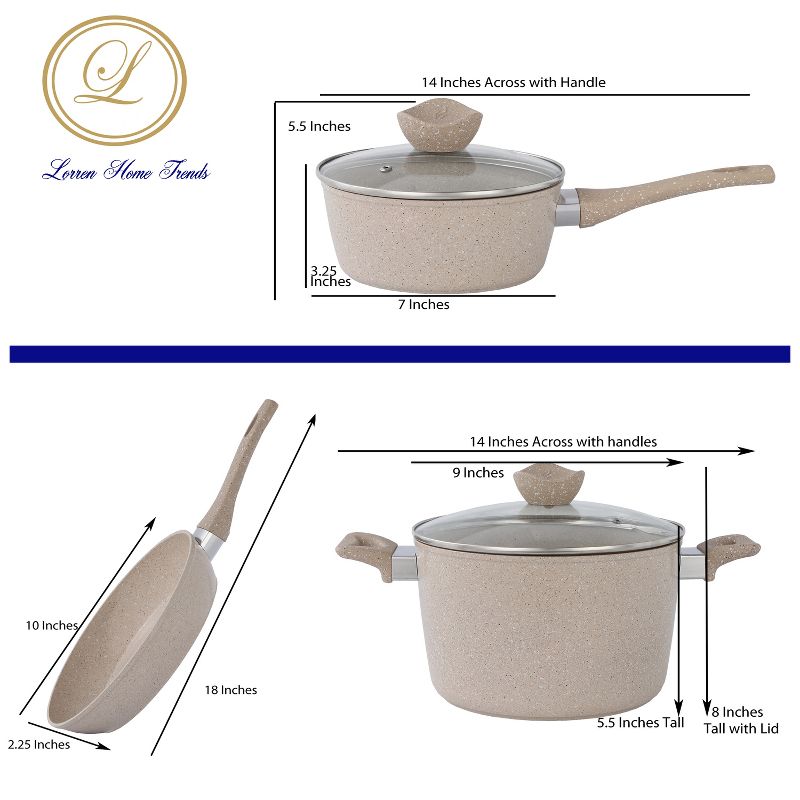Lorren Home Trends Cookware Set, Beige Granite, Non-Stick Coating, 10-Inch Fry Pan, 5-Quart and 1.6-Quart Pot with Glass Lid, 5-Piece