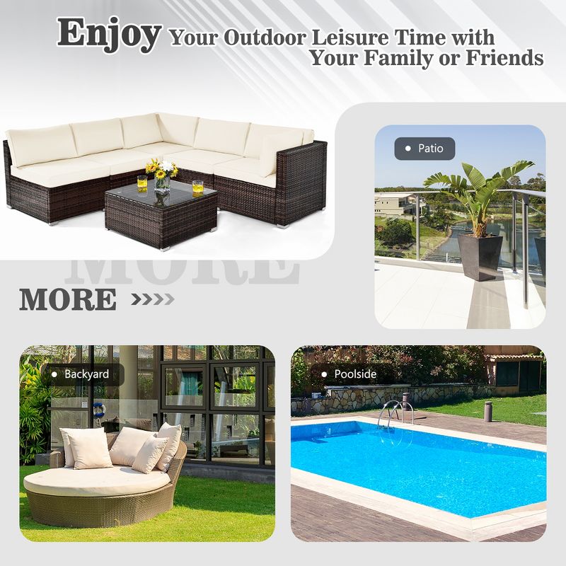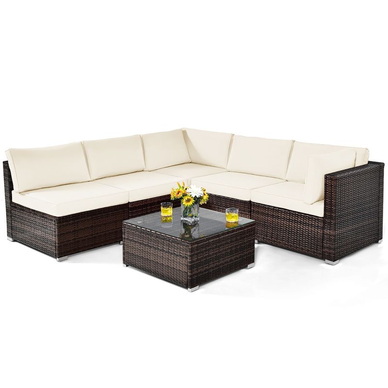 Costway 6PCS Patio Rattan Furniture Set Cushioned Sofa Coffee Table Garden White