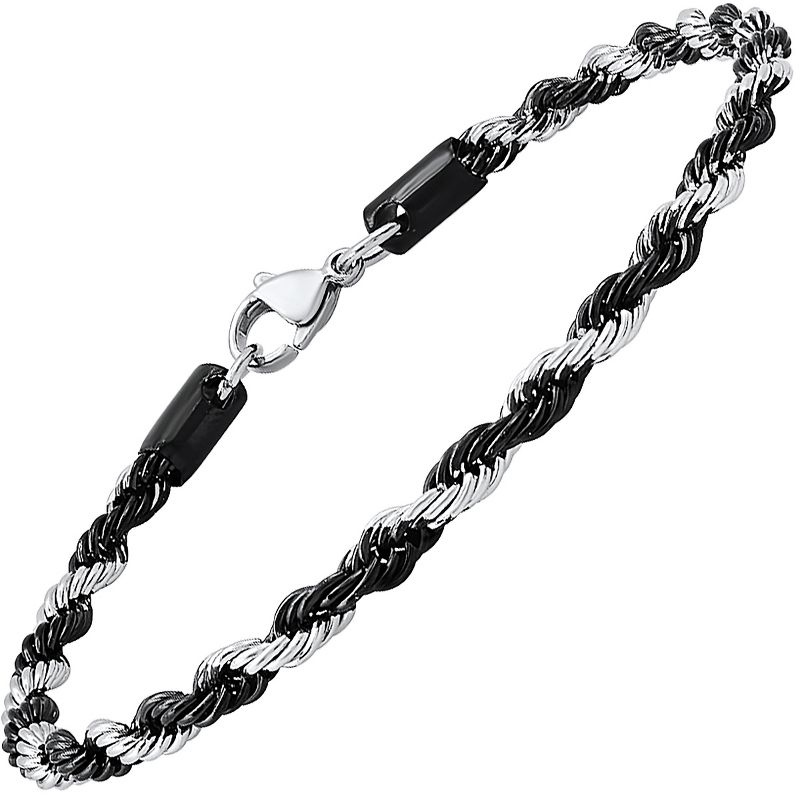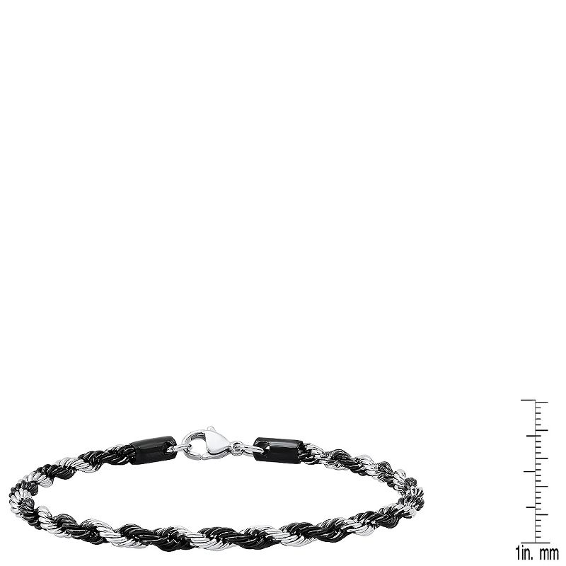 Steeltime Men's two tone black ip and stainless steel rope chain bracelet