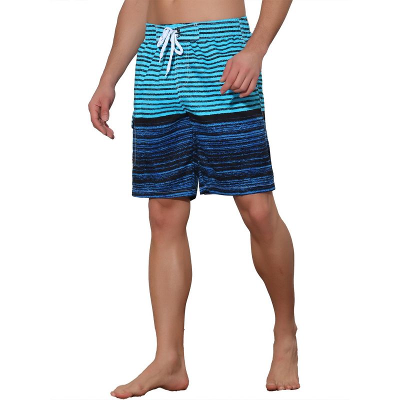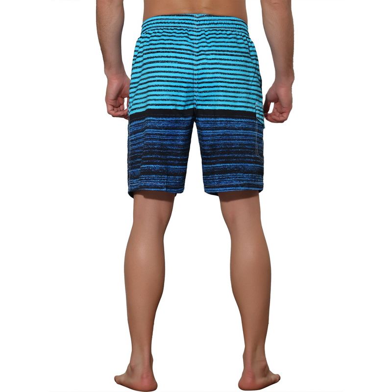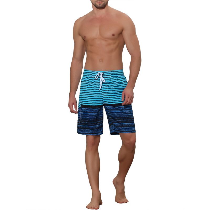 Lars Amadeus Men's Color Block Stripes Pattern Drawstring Waist Swimwear Shorts Blue 36