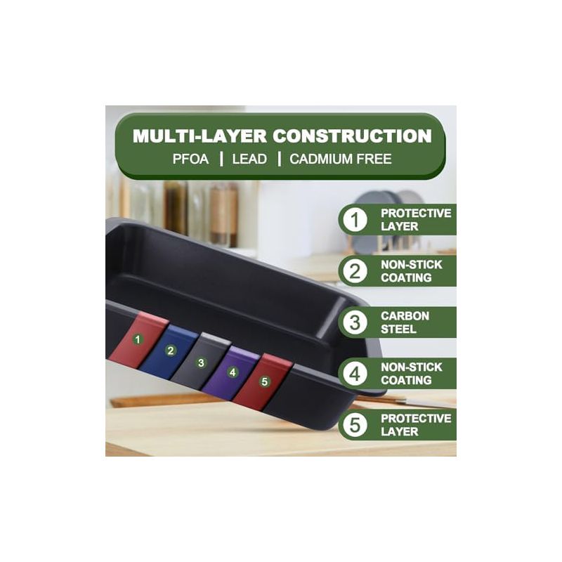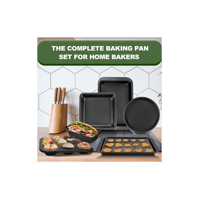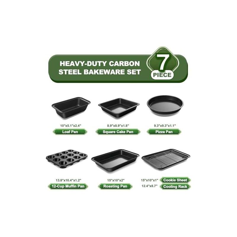 Itopfox Nonstick Bakeware Set, 7-Piece Carbon Steel Baking Pans with Cooling Rack, Stackable Design, Perfect for Cakes, Muffins, Pizza and More