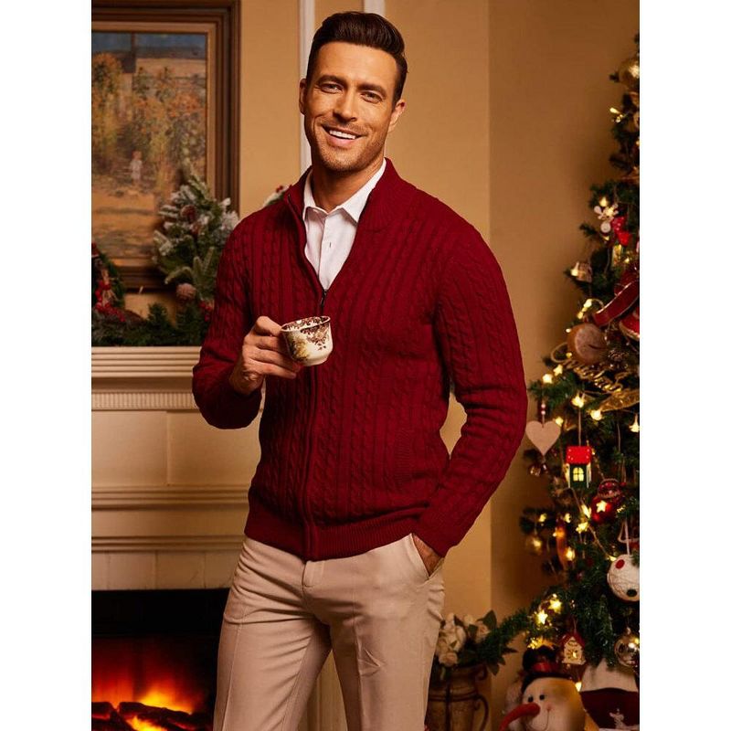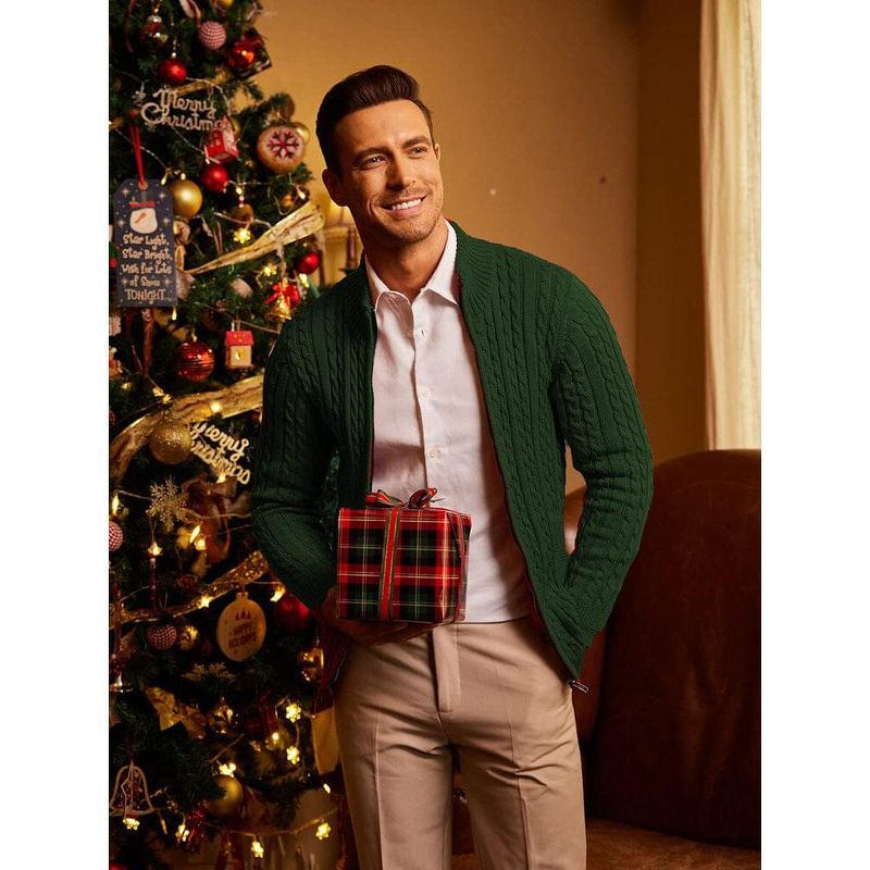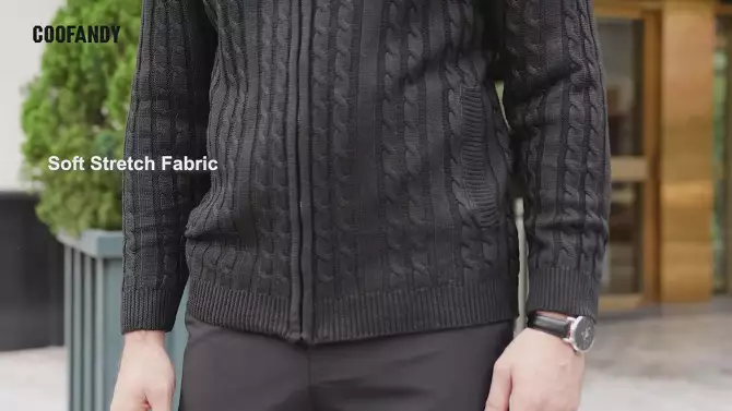 COOFANDY Men's Full Zip Cardigan Sweater Slim Fit Cable Knitted Zip Up Sweater with Pockets Black XL