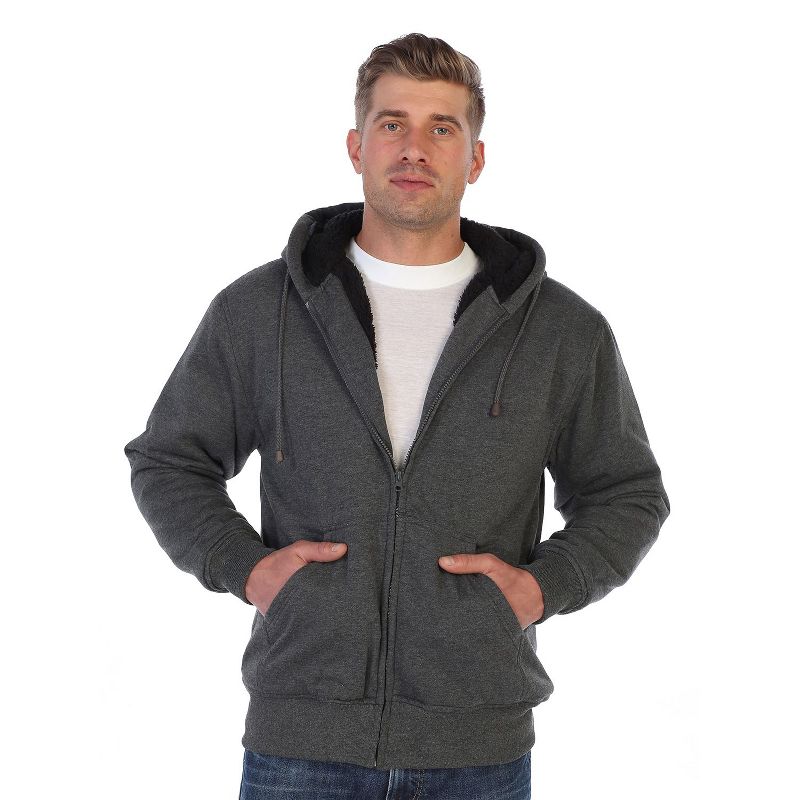 Gioberti Men's Heavyweight Faux Shearling Lined Fleece Hoodie Jacket, Charcoal B, Small