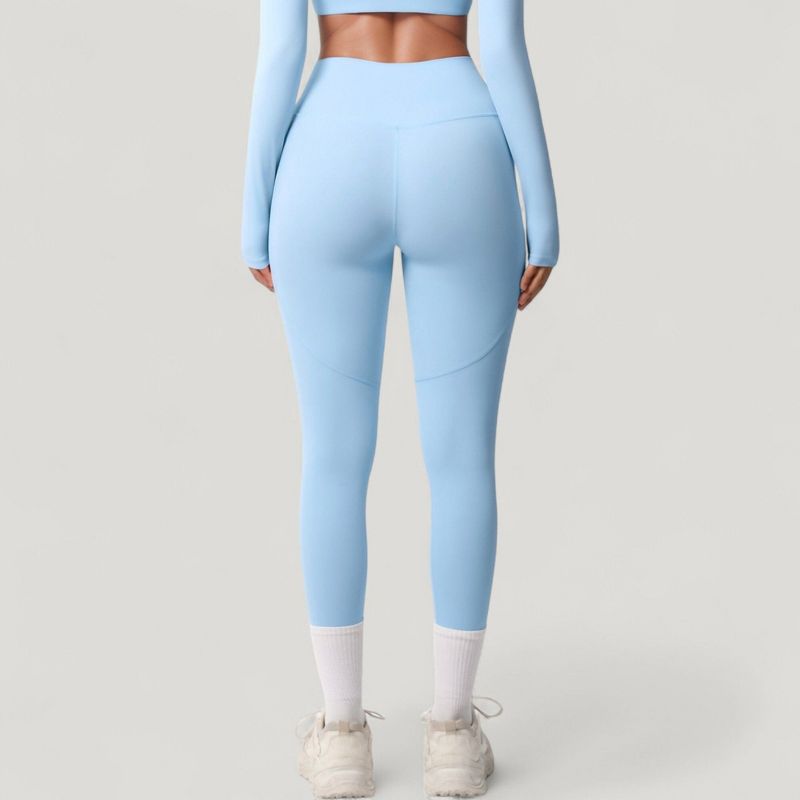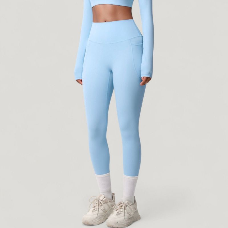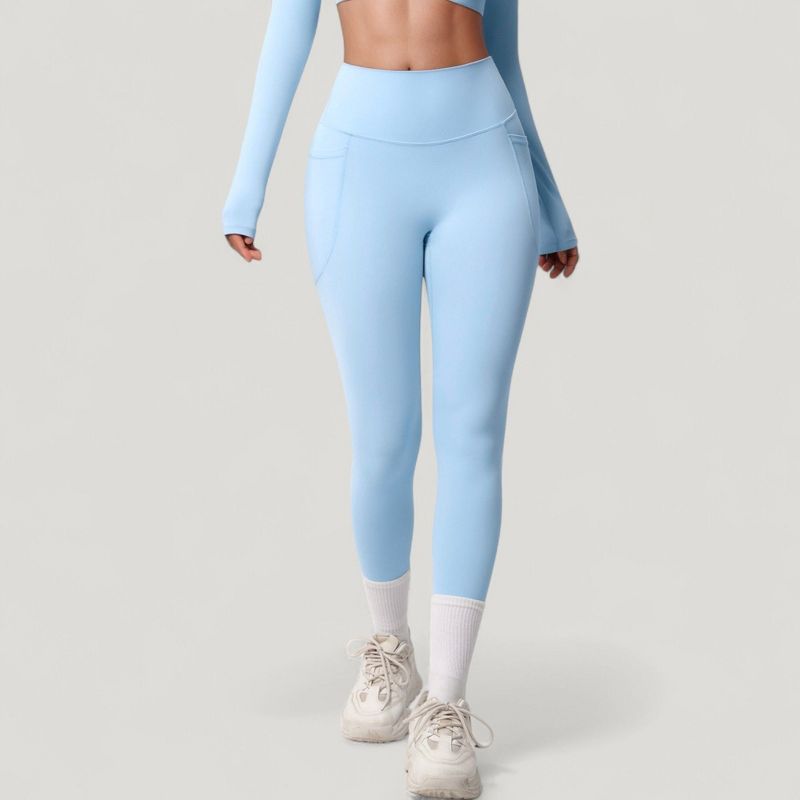 Anna-Kaci Active Women's High Waist Full Length Leggings with Side Pockets and Wide Waistband - Medium, Light Blue