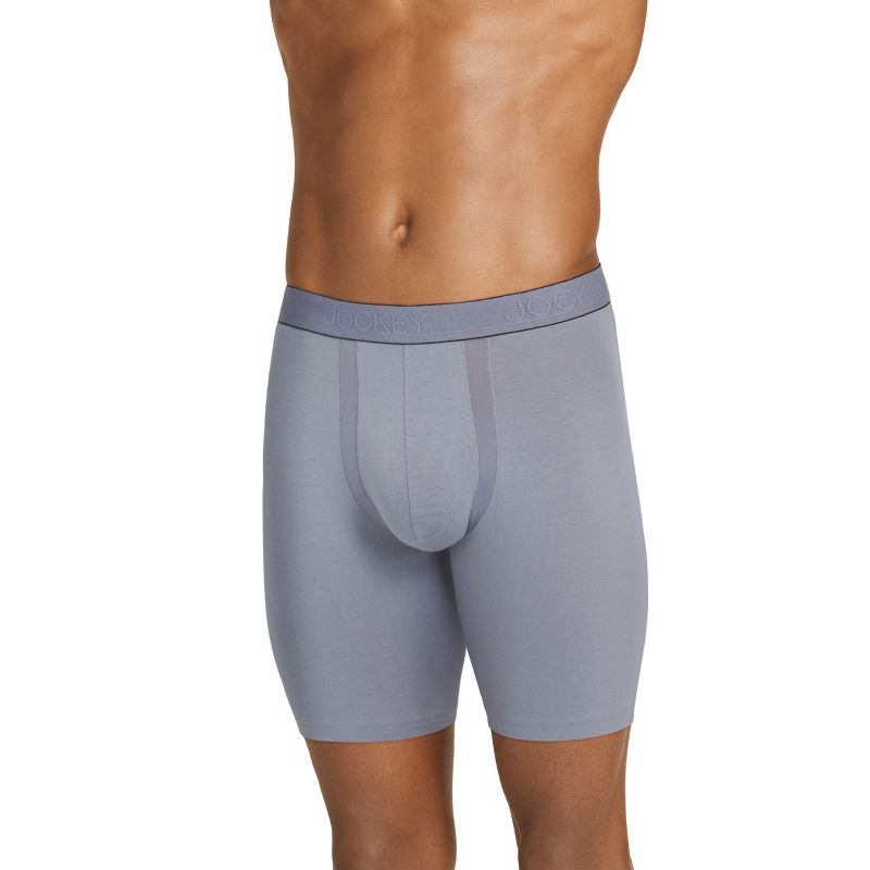 Jockey Men's Chafe Proof Pouch Cotton Stretch 8.5" Long Leg Boxer Brief - 3 Pack M Just Past Midnight/Mid Grey/Black Out