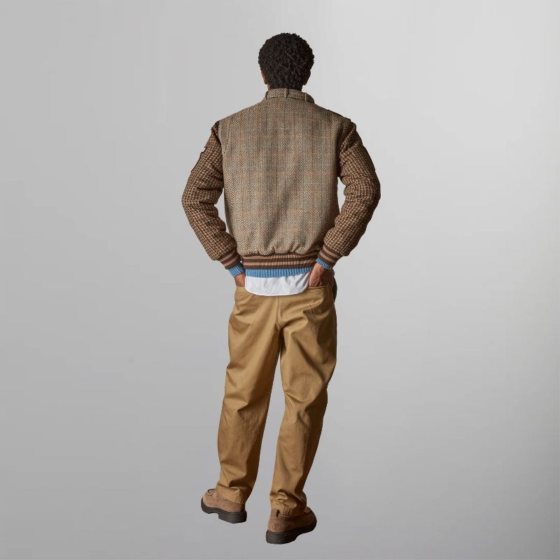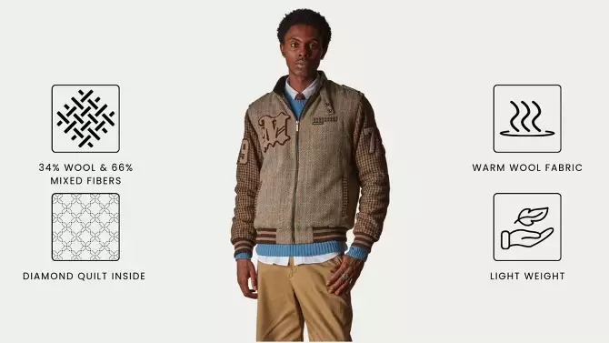Members Only Men's Tweed Varsity Jacket- Beige- Small