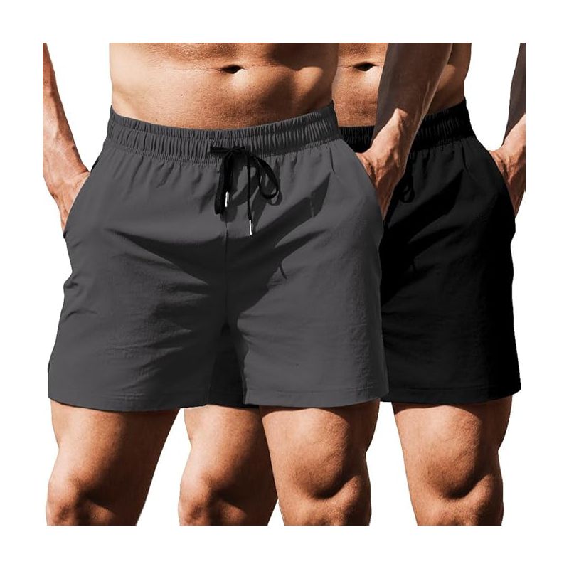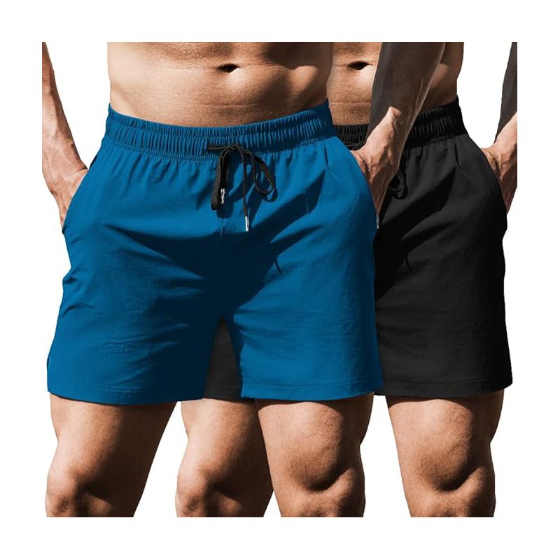 COOFANDY Men's Running Athletic Shorts 5 Inch 2 Pack Gym Workout Shorts Fitted Exercise Hiking Shorts with Zipper Pocket Dark Grey/Navy Blue XXXL