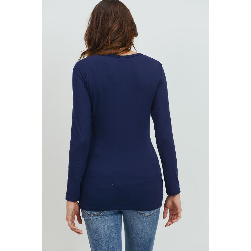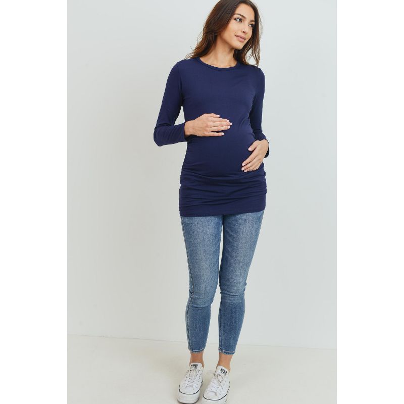 Hello Miz Women's Casual Crewneck Long Sleeve Side Ruched Maternity Top - Navy - Medium