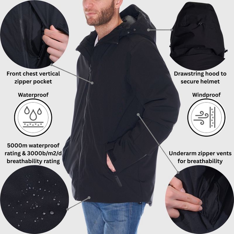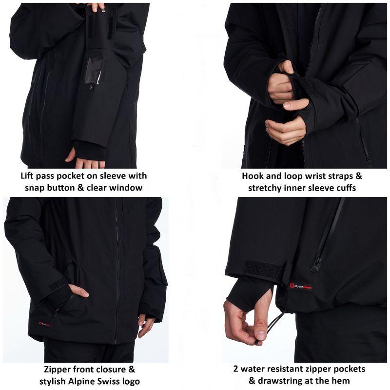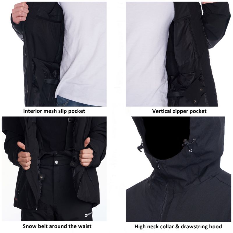 Alpine Swiss Mens Waterproof Ski Jacket Hooded Snowboarding Coat Warm Winter Snow Jacket Raincoat Black Small