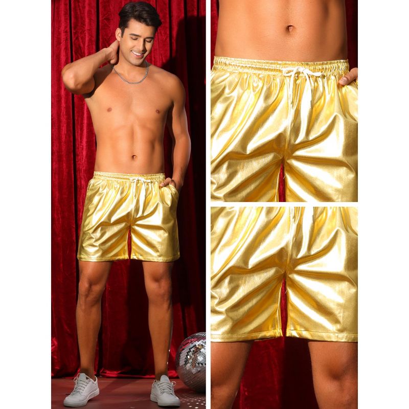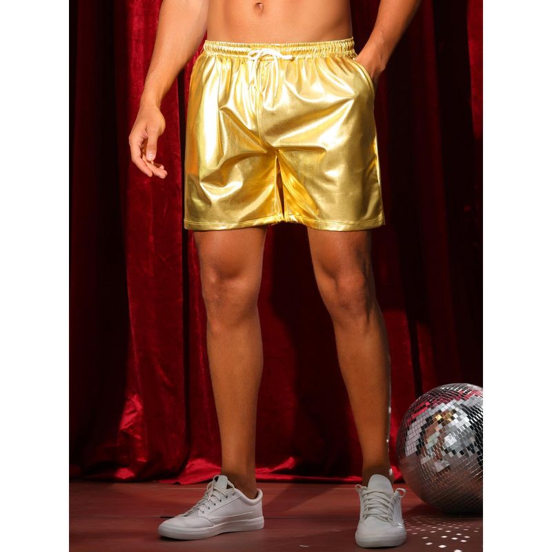 INSPIRE CHIC Men's Elastic Drawstring Party Metallic Hot Shorts Golden 32