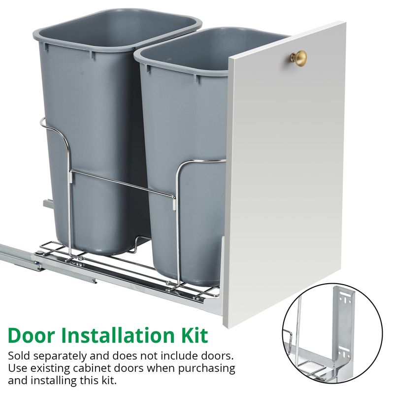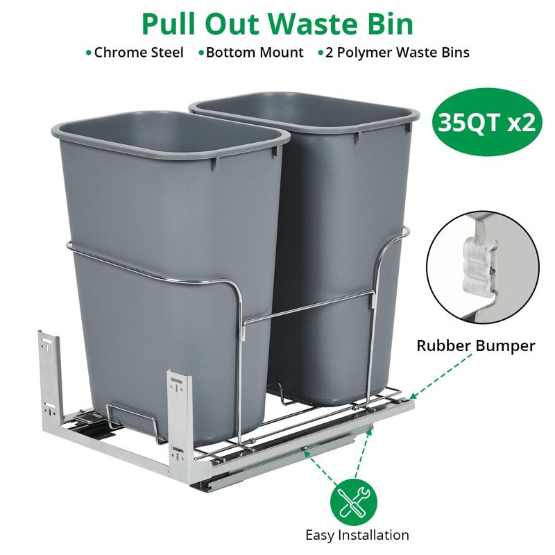 Double Pull-Out Trash Can Under Cabinet – 2*25 QT Space-Saving Steel Garbage Bins with Smooth Full-Extension Slides, Ideal for Kitchen Recycling