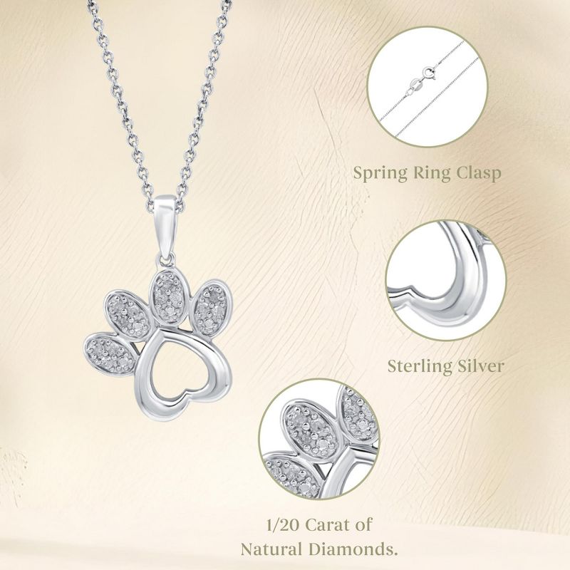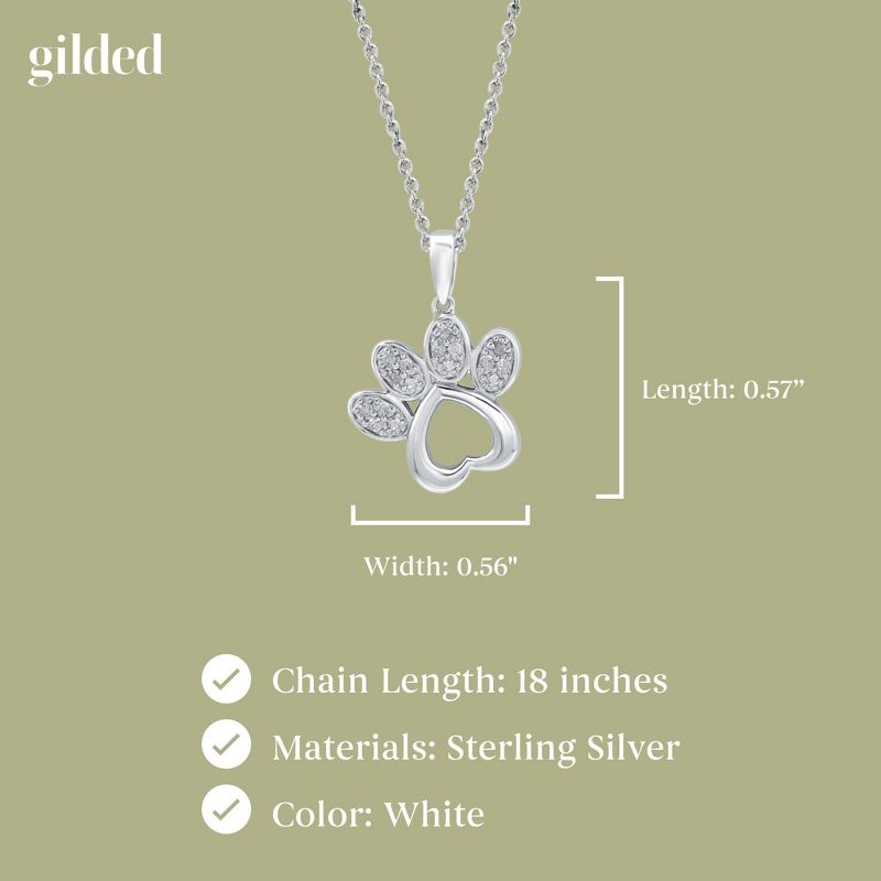 GILDED 1/10 Natural Round-Cut Diamond Paw Shaped Pendant-Necklace in Sterling Silver, 18-inch Chain