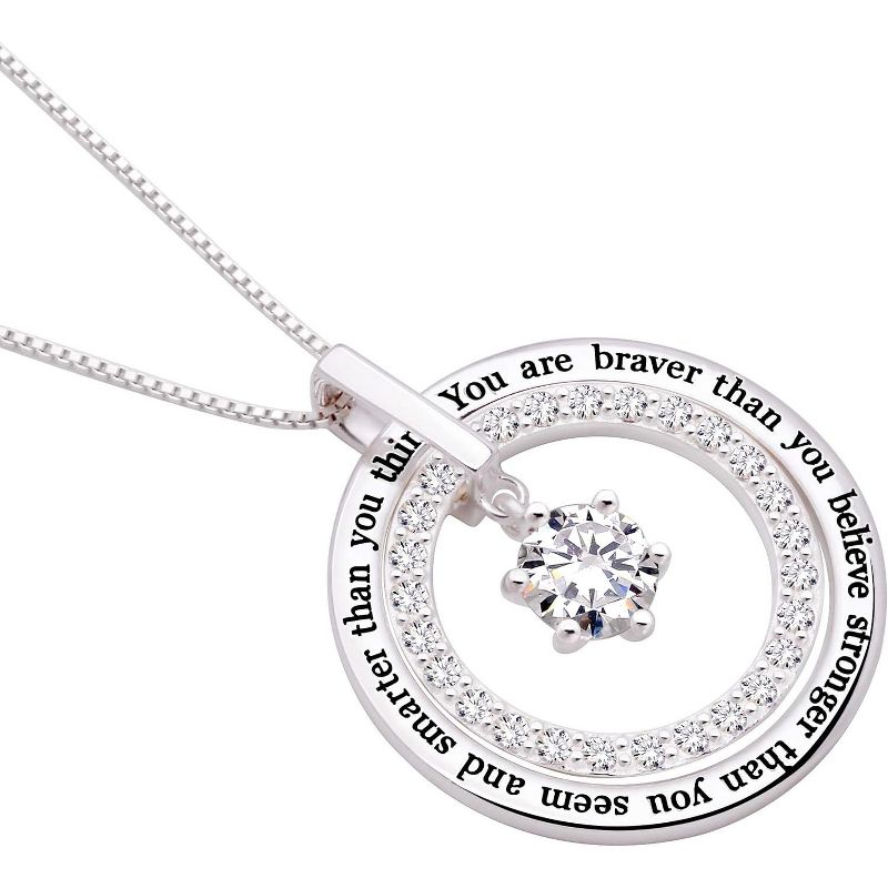 Jewelry Sterling Silver You are braver than you Cubic Zirconia Pendant Necklace