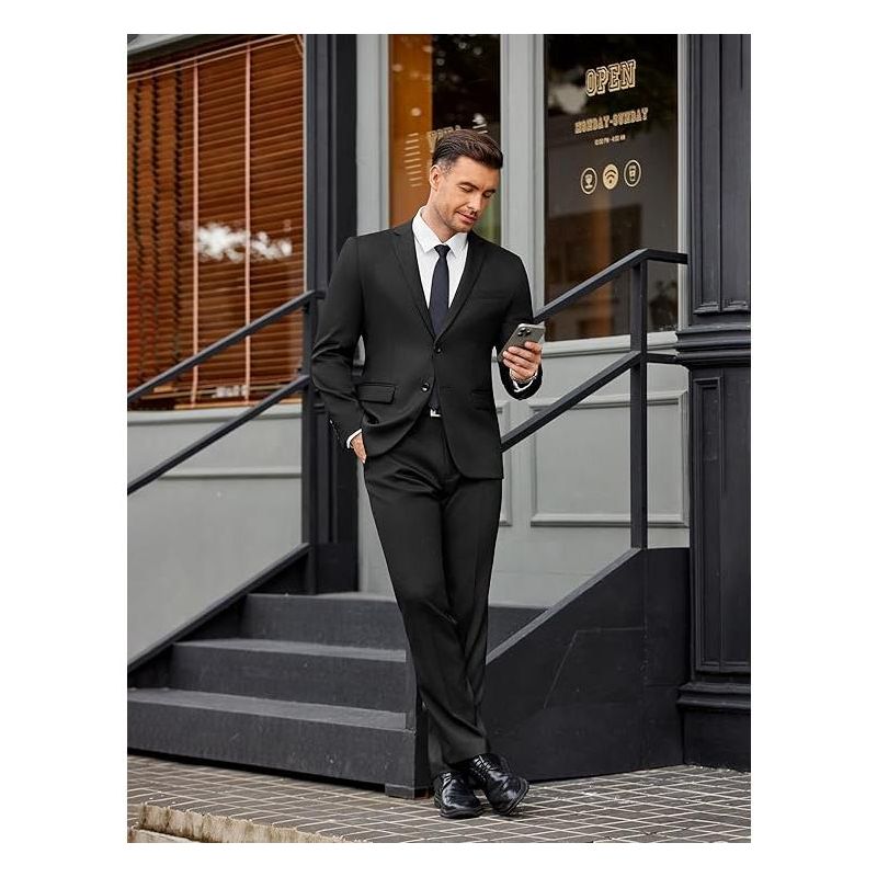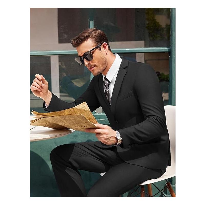 COOFANDY Men's 2 Piece Suits Classic Fit Suit Set 2 Button Blazer Jacket and Dress Pants for Wedding Business Prom Black XL