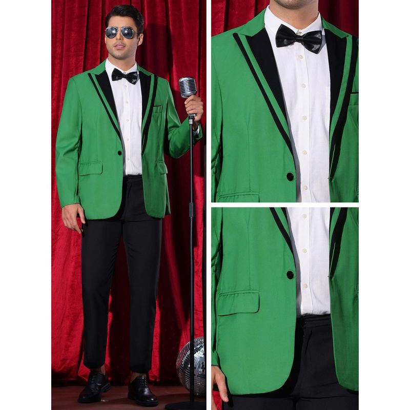Lars Amadeus Men's Formal Business Color Block Peak Lapel Prom Blazers Green Small