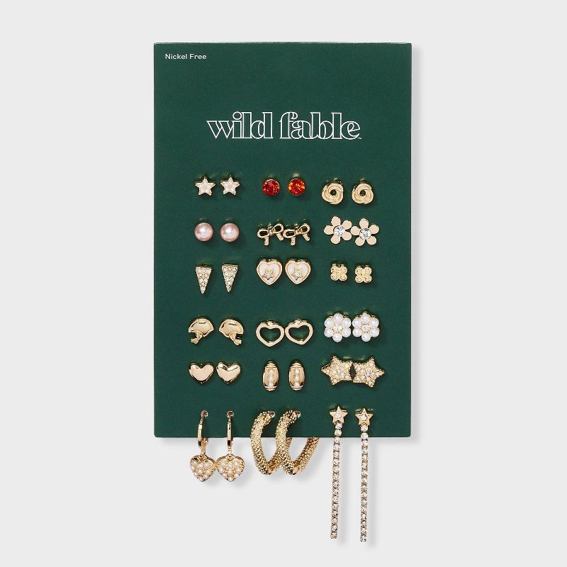 Heart Star and Flower Earring Set 18pc - Wild Fable™ Gold/White/Red