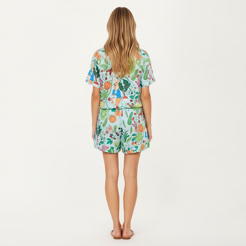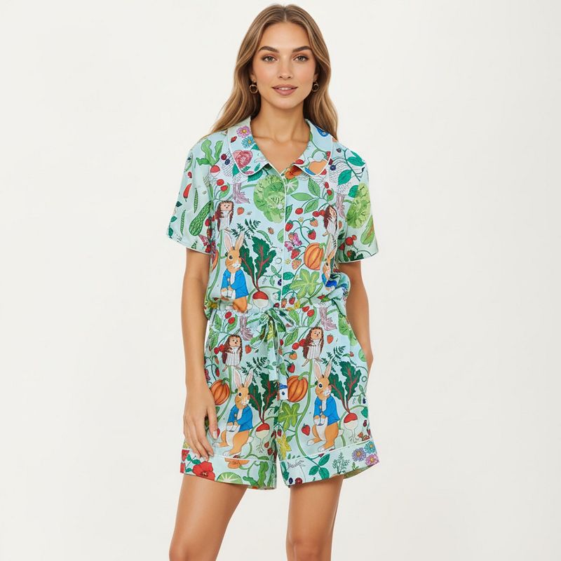 Anna-Kaci Lounge Women's Whimsical Garden Animal Print Pajama Set with Short Sleeve Button-Up Top and Matching Shorts - Small, White