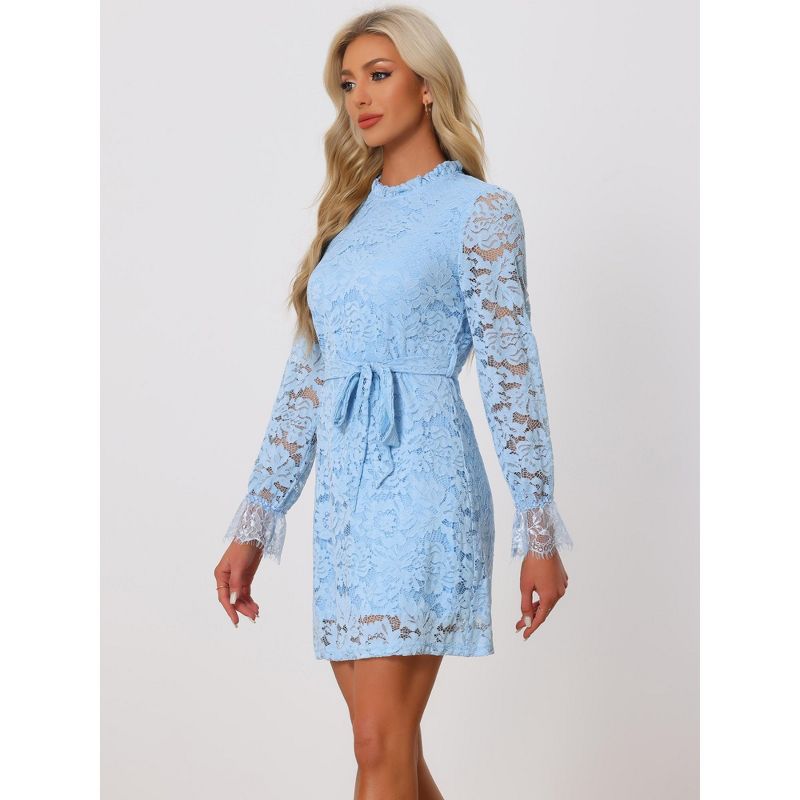 Allegra K Women's Elegant Ruffle Crew Neck Formal Elegant Mini Floral Lace Dress Sky Blue Large