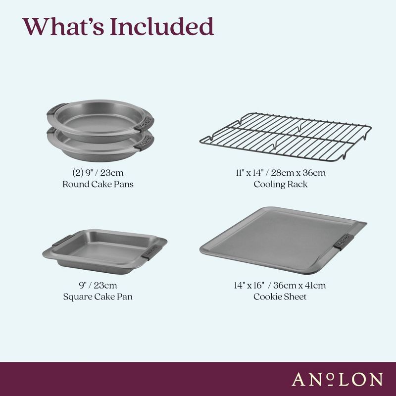 Anolon Advanced Bakeware 5pc Nonstick Set with Silicone Grips Gray: Baking Sheet Pan Set, Even-Heating, Oven-Safe