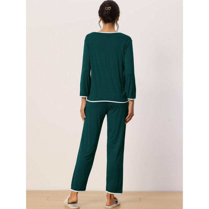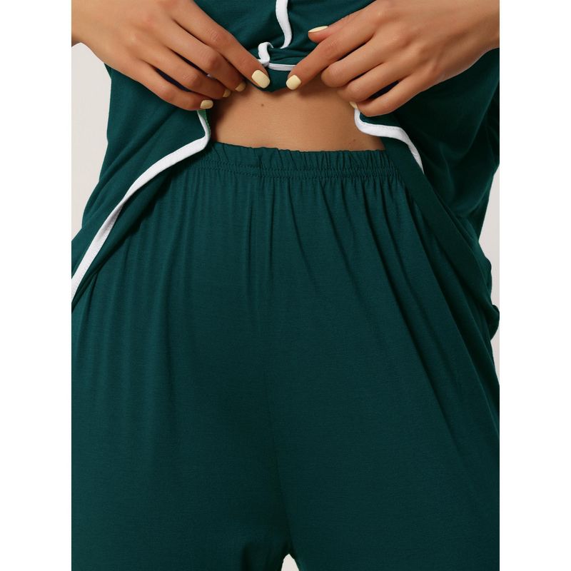 cheibear Women's Long Sleeve Pullover Top with Waist-Elastic Pants Sleepwear Pajama Sets Small Green