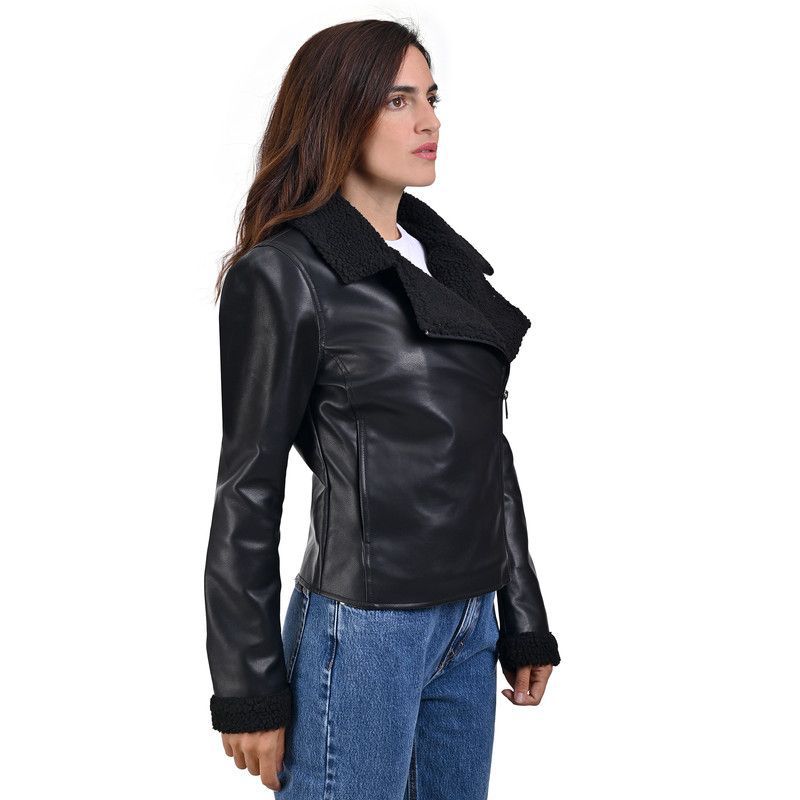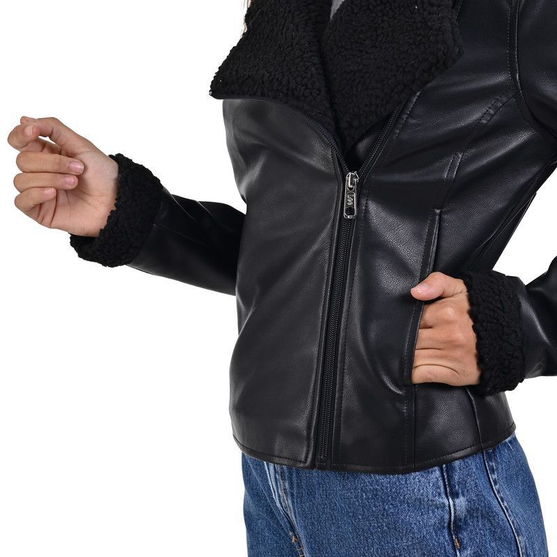 LEE Women's Biker Jacket With Fur 231, Black, M