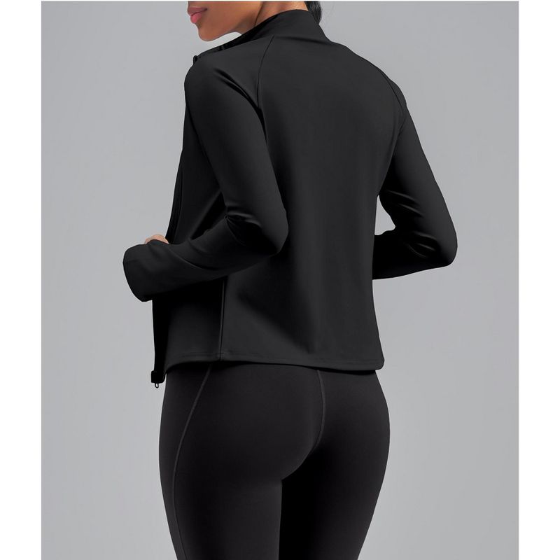 Women's Lightweight Workout Athletic Jacket Slim Fit Full Zip Cropped Running Yoga Coats with Thumb Hole,Black,X Large