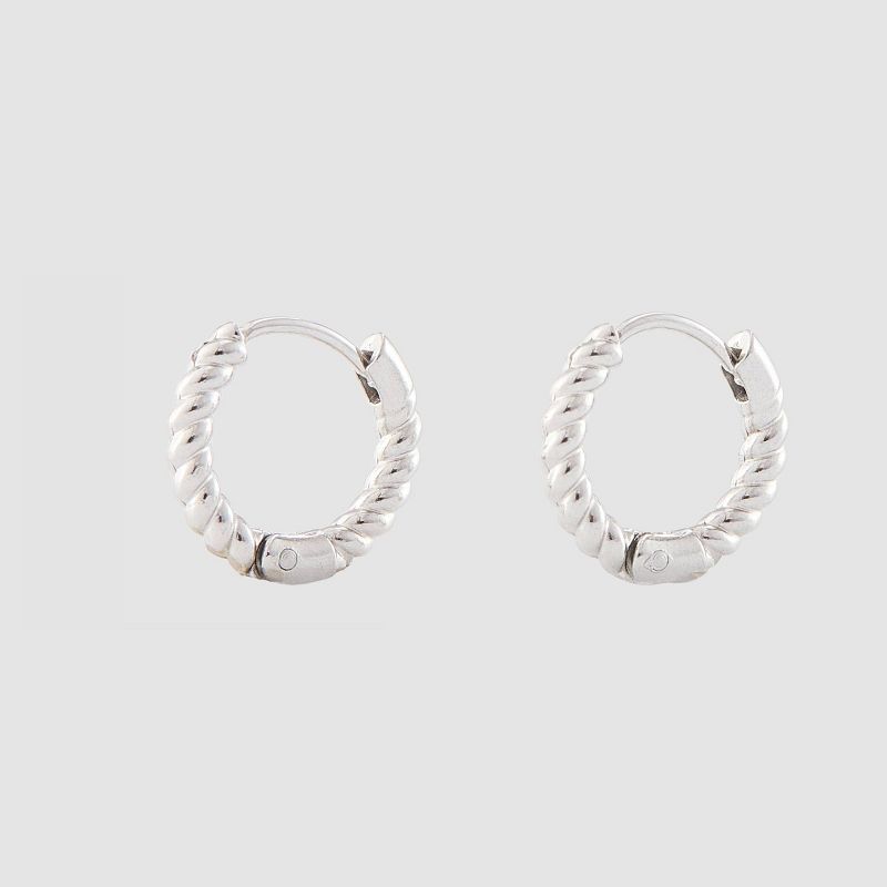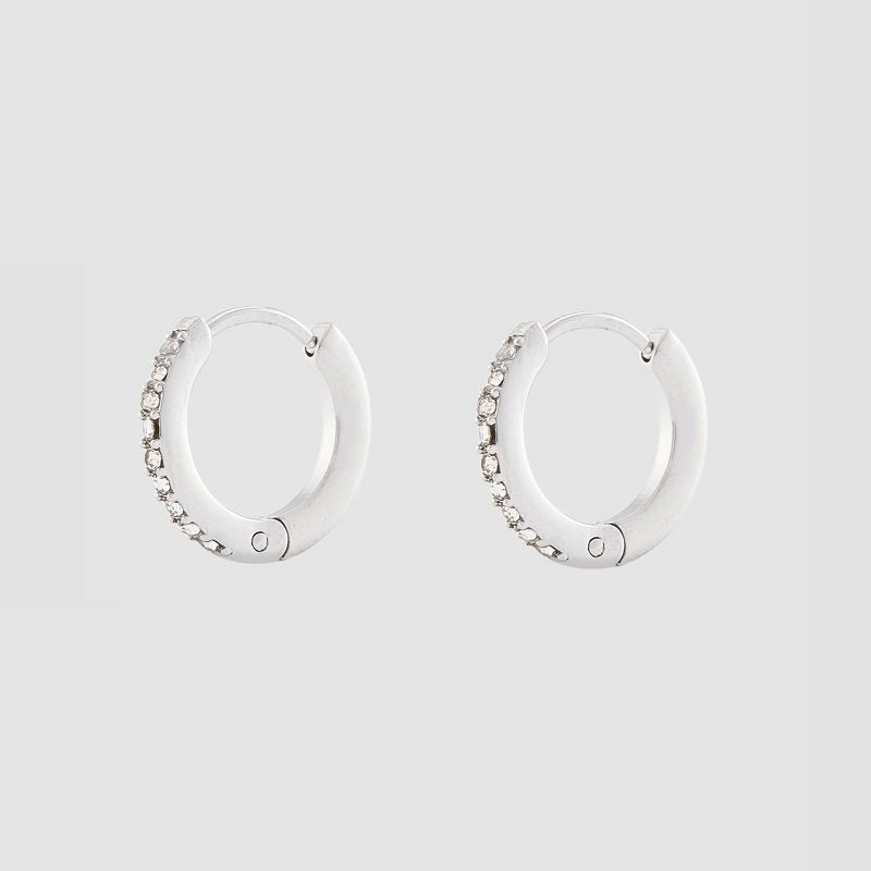 Glass Crystal Trio Water Resistant Metallic Hoop Earrings - A New Day™ Silver