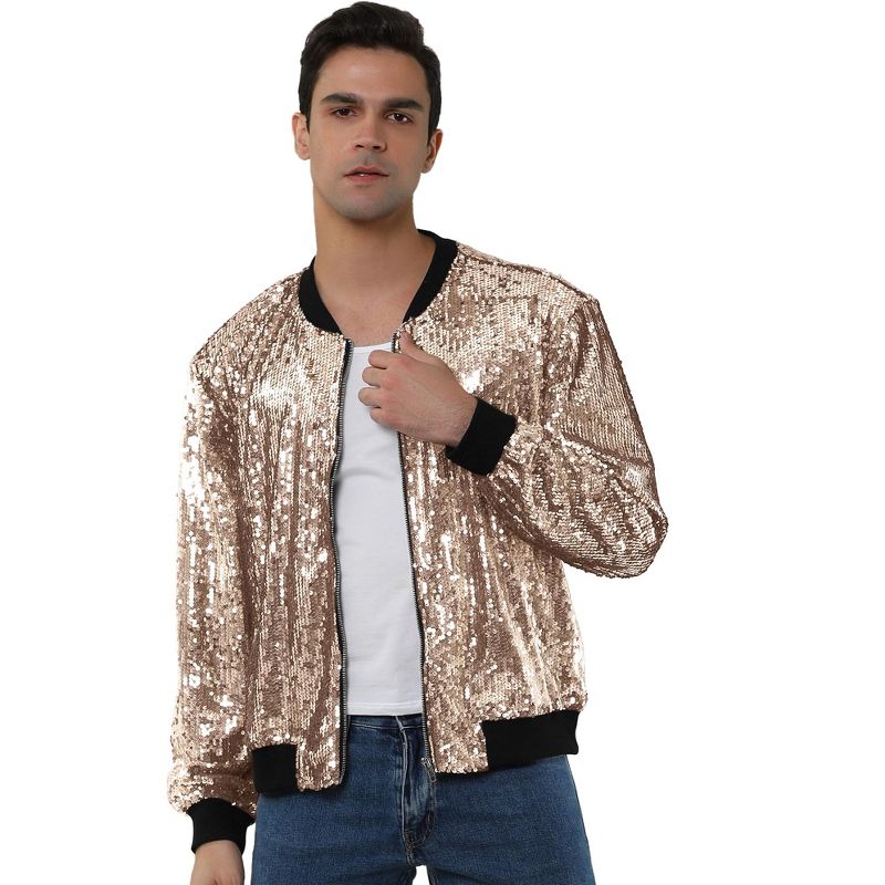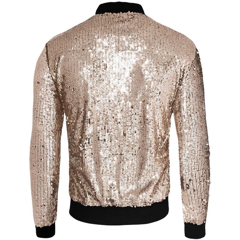 INSPIRE CHIC Men's Party Disco Club Sequins Bomber Jacket Pink Gold Medium