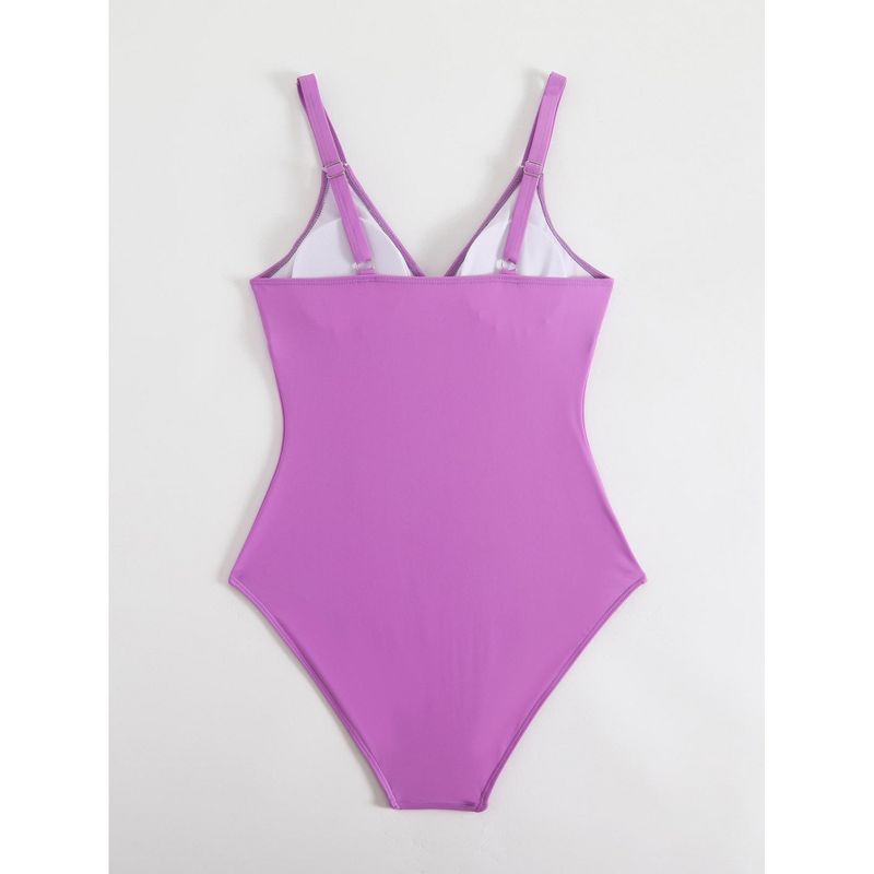 One Piece Swimsuits for Women V Neck Tummy Control Swimsuits Ruched Bathing Suits Adjustable Strap Removable Padding Swimsuits,Purple - Small
