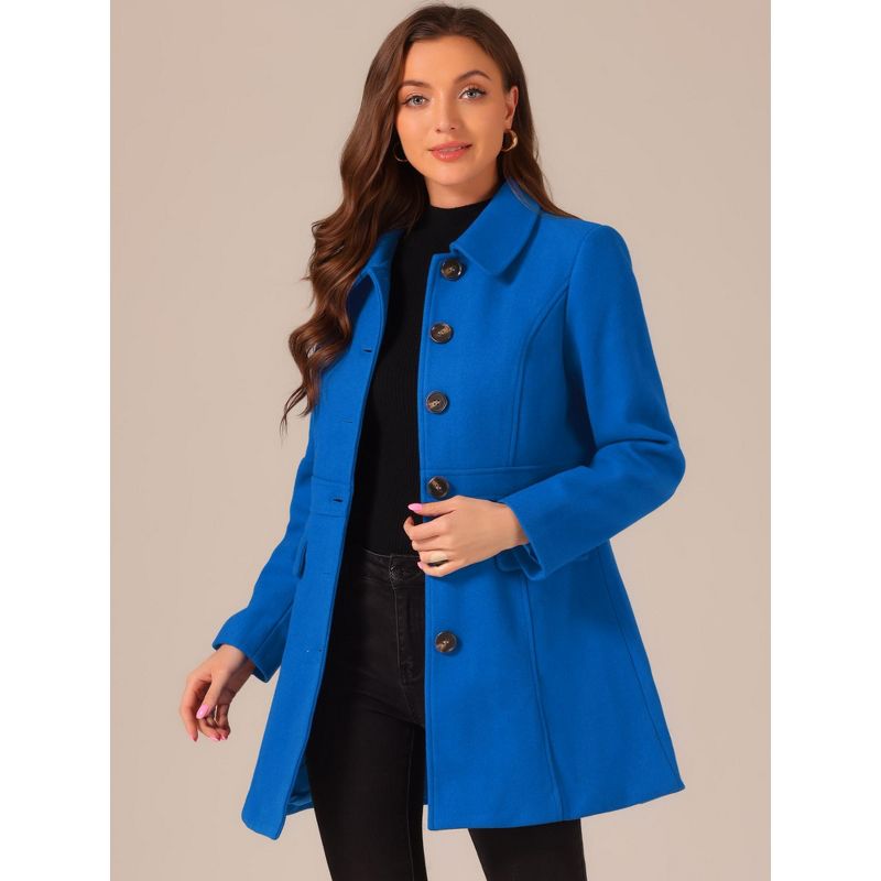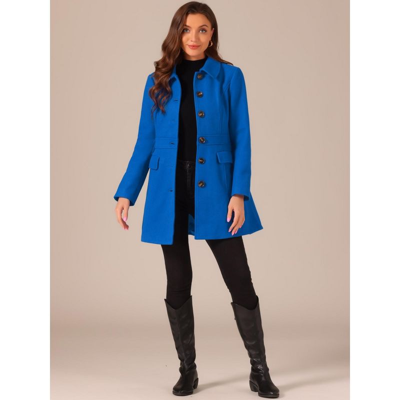 INSPIRE CHIC Women's Winter Collared Flap Pocket Single Breasted Back Split Buttoned Long Overcoats Medium Blue