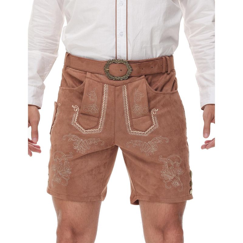 Men's High-Rise Shorts With Pockets Wide Belt Adjustable Casual,Brown,S