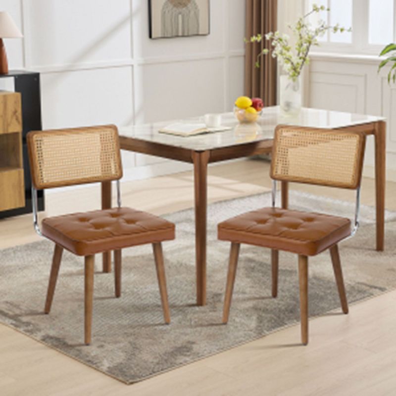 TackView Rattan Dining Chairs Set of 2, Kitchen Chairs with Wooden Legs, Velvet Upholstered Armless Dining Room Seat for Kitchen, Restaurant, Brown