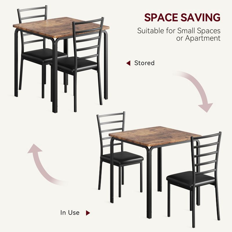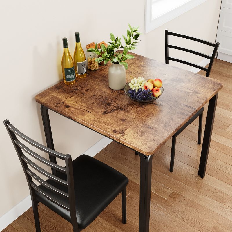 Dining Table for 2, Square kitchen Dinner Table Sets with 2 Upholstered Chairs, Space Saving Wood Modern Dinner Table , Dining Room Furniture