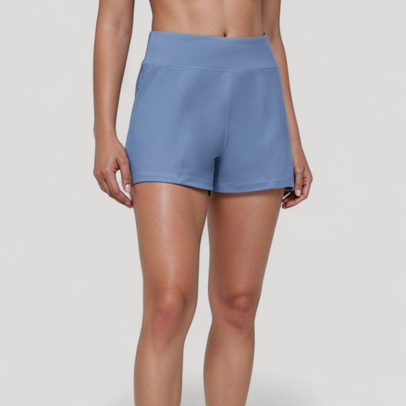 Anna-Kaci Active Women's High Waist Performance Shorts with Wide Waistband and Side Pockets for Active Comfort - Large, Blue