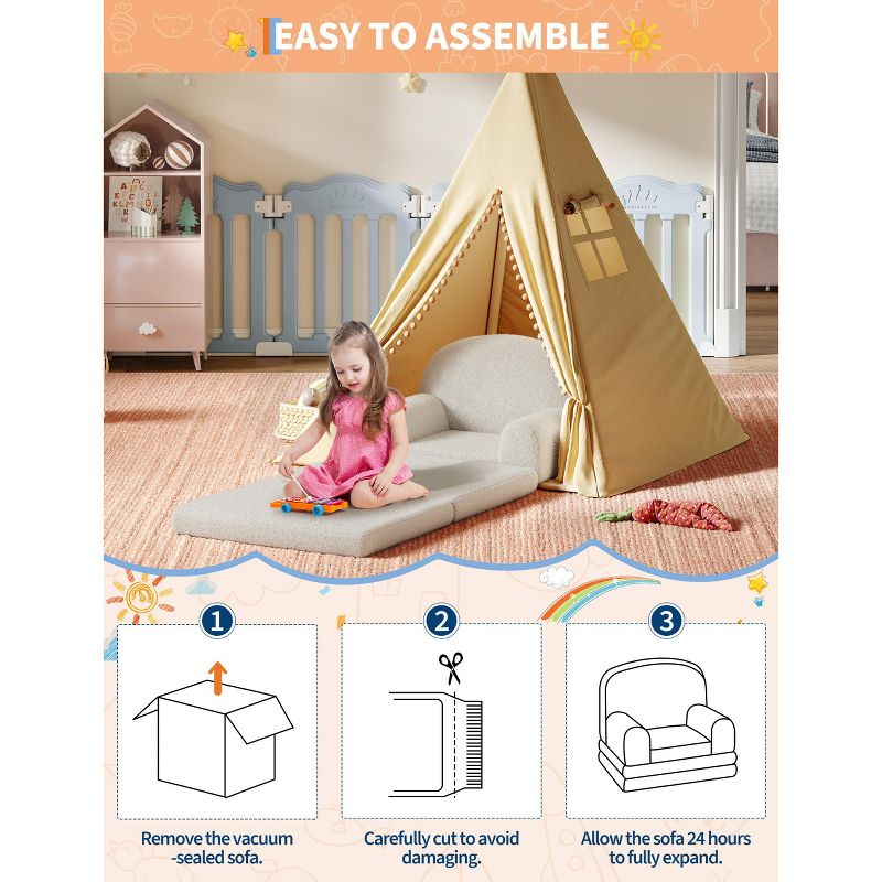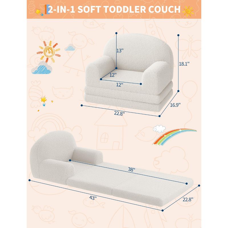 Kids Sofa Chair, 2-in-1 Convertible Toddler Couch Lounge, Comfy Fold Out Teddy Fleece Fabric Children's Sofa Bed for Playroom, Bedroom, Nursery