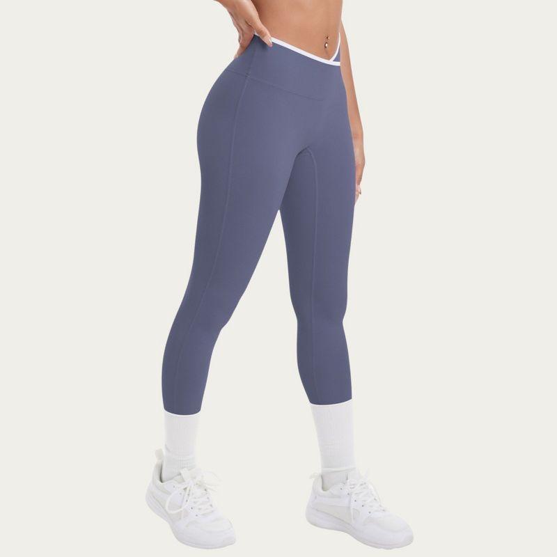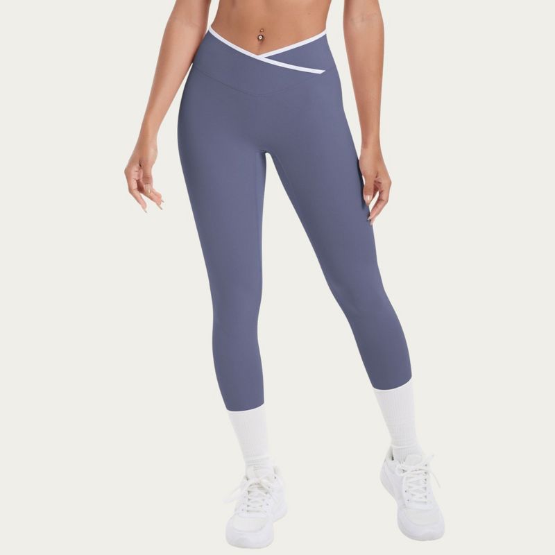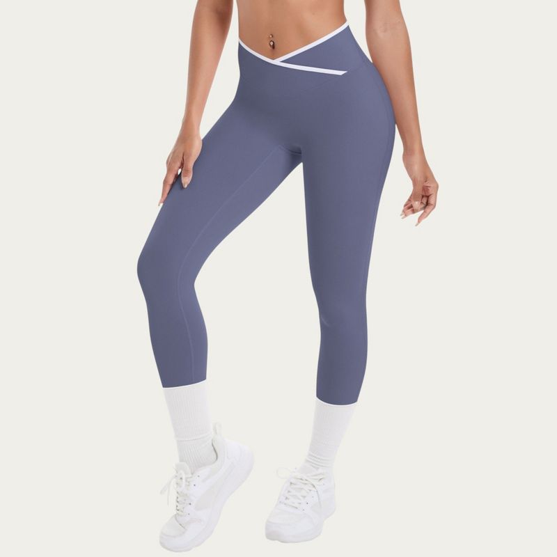Anna-Kaci Active Women's High Waist Crossover Leggings with Contoured Fit and V-Shaped Waistband - Medium, Gray