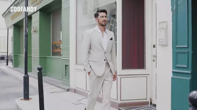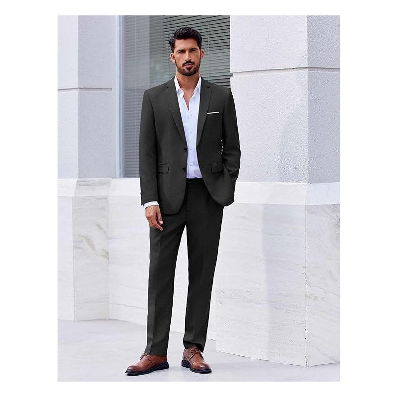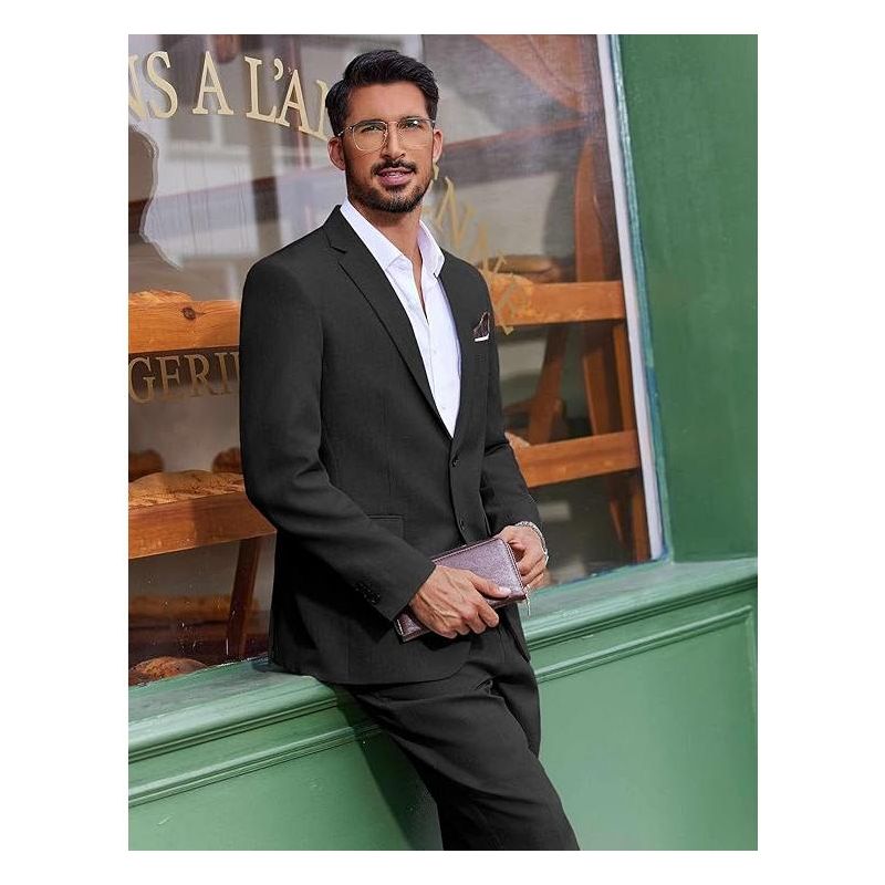 COOFANDY Mens Suit 2 Piece Suit Classic Fit Two Button Blazer Jacket Pants Set Business Wedding Party Suits for Men Black 42