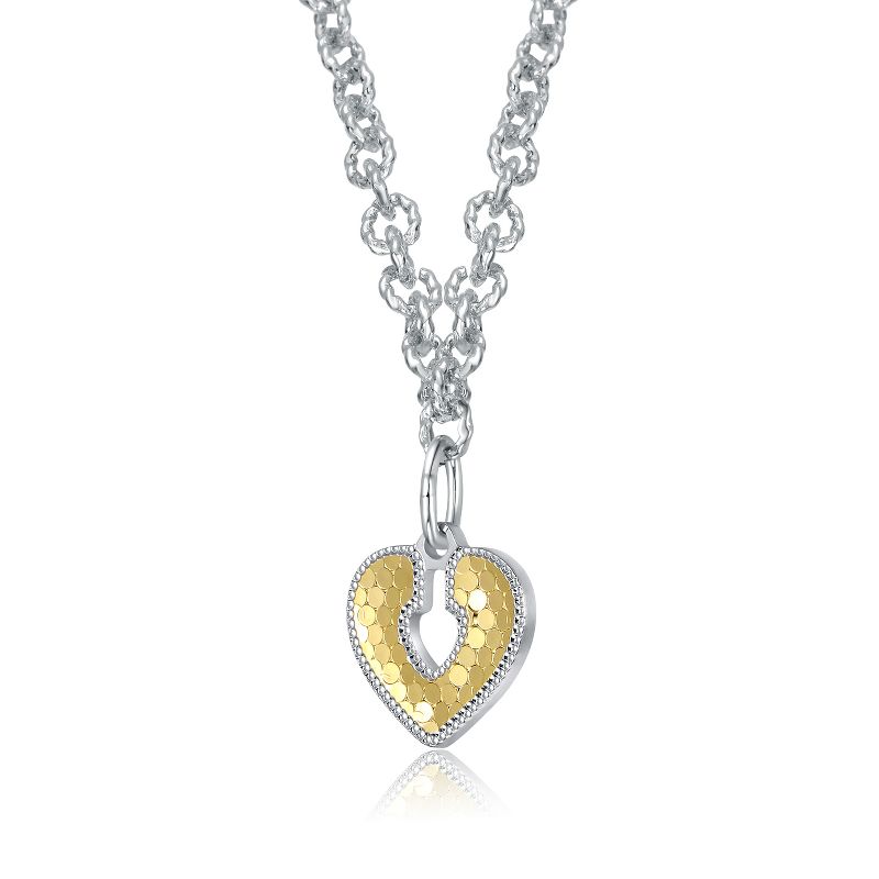 Guili Two-Tone Textured Open Padlock Pendant Necklace – Modern, Stylish, and Unique Jewelry for a Trendy Fashion Statement, Perfect for Everyday Wear
