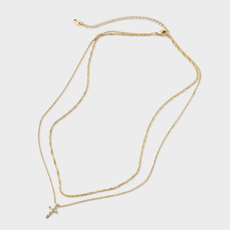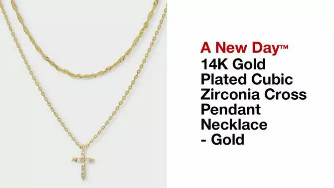 14K Gold Plated Cubic Zirconia Cross Pendant Necklace - A New Day™ Gold