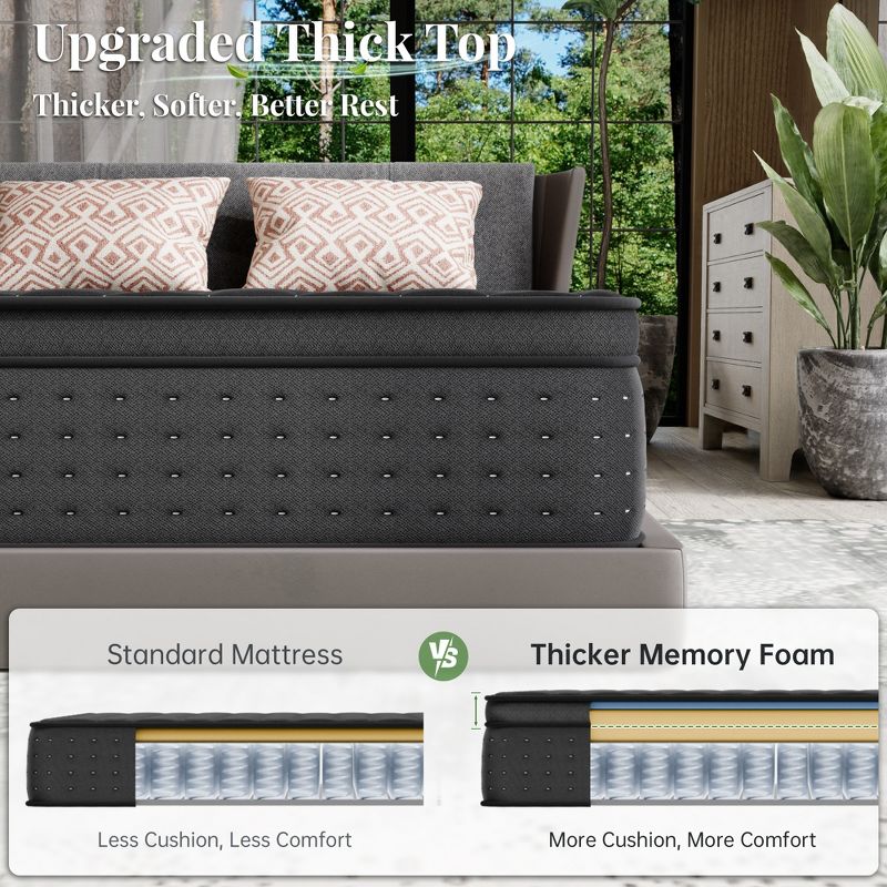 12" & 10" Medium Firm Pillow Top Cooling Gel Hybrid Mattress With Certipur-us Certified Foam