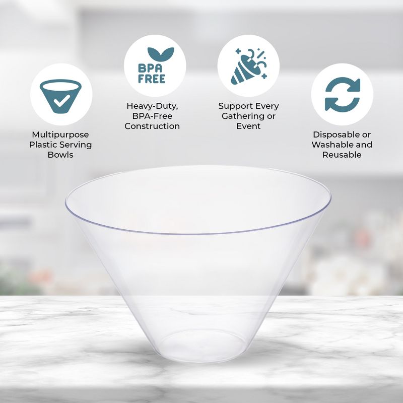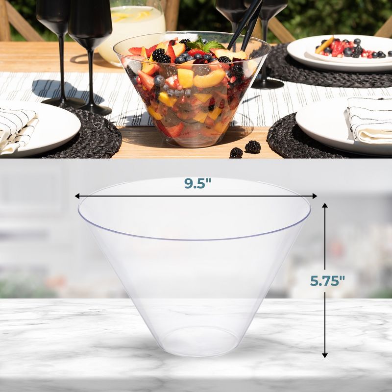 Posh Setting Clear Plastic Cone Shaped Salad Bowl - 96 oz. - 5 Pack