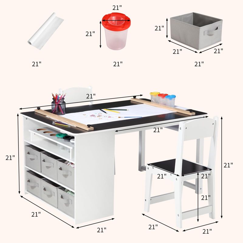 Kids Art Table and 2 Chairs,Toddler Craft and Play Wood Activity Table with Storage Bins, Drawing Desk, Kids Activity Table and Study Table
