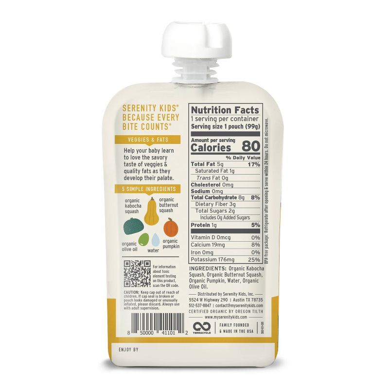 Serenity Kids Organic Squashes with Organic Olive Oil Baby Food Pouch - 3.5oz