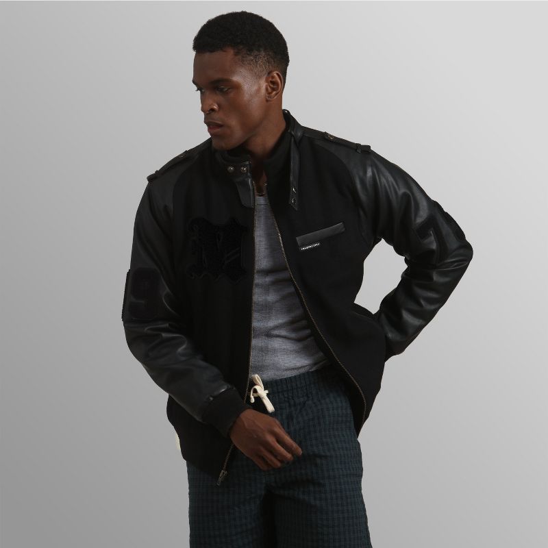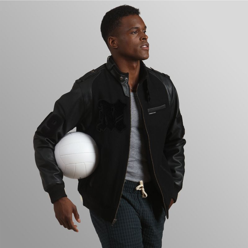 Members Only Men's Varsity Jacket- Black- Medium