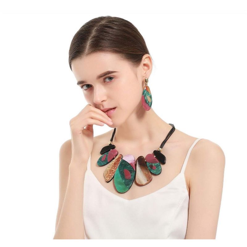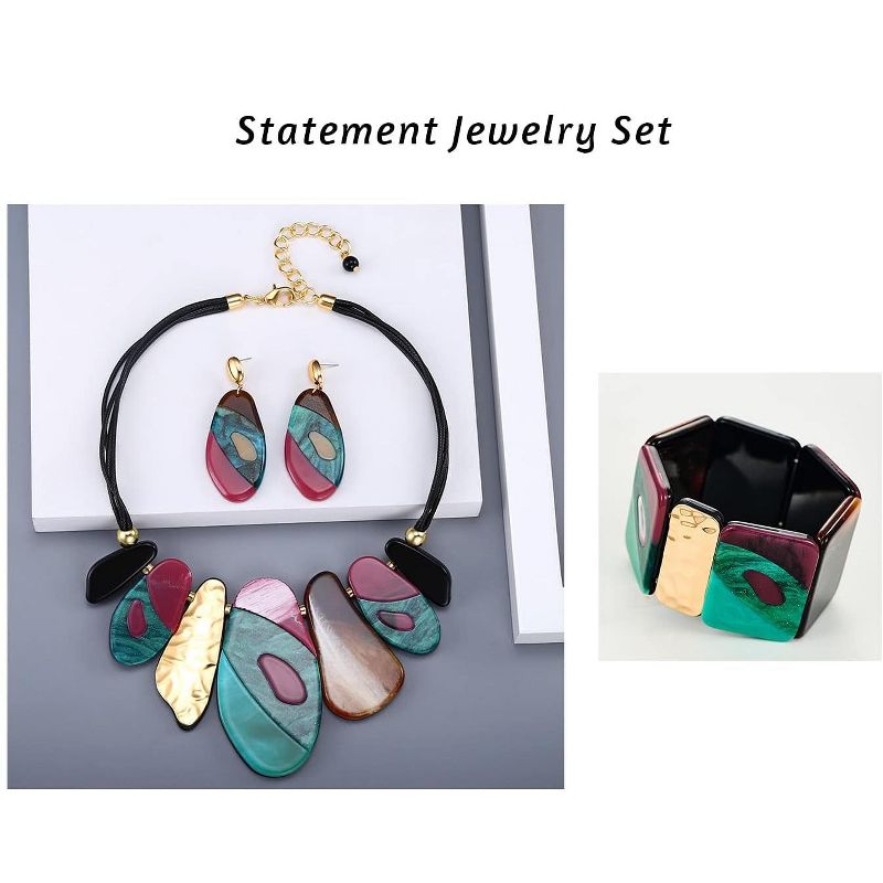 Vintage Bib Necklace – Chunky Geometric Acrylic Statement Collar