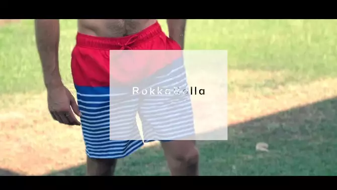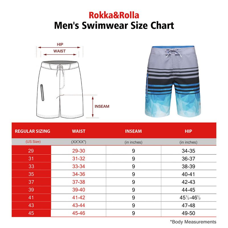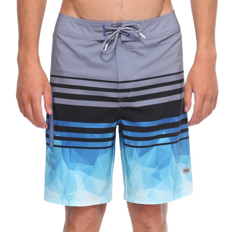 Rokka&Rolla Men's 9" 4-Way Stretch Board Swim Shorts -Blue Geometry, size 41