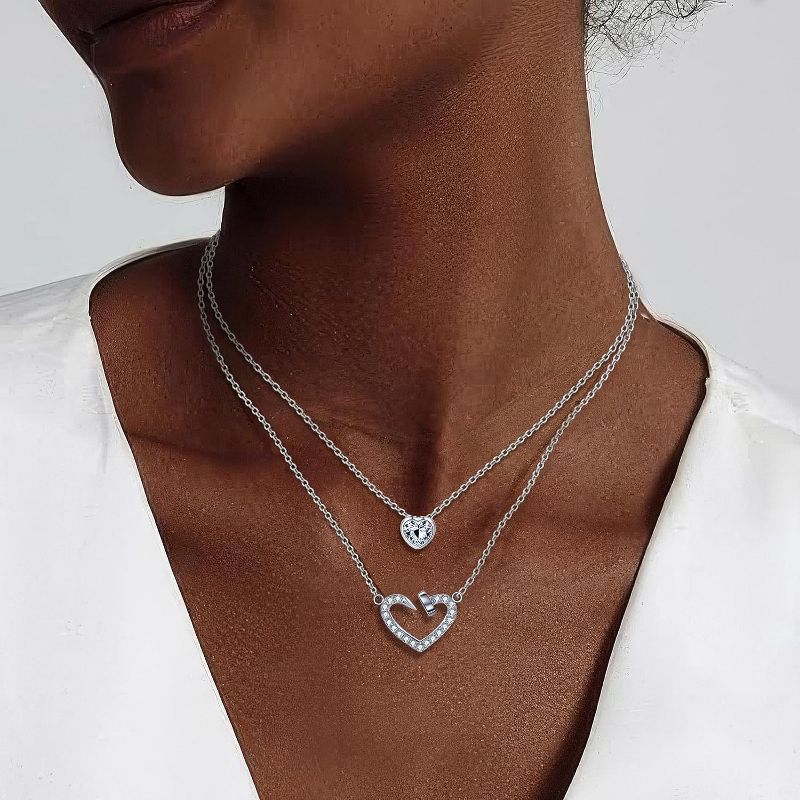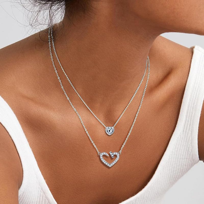 14K Gold & Platinum Plated Double Layer Pendant Necklace, Fashionable Layered Jewelry for Women