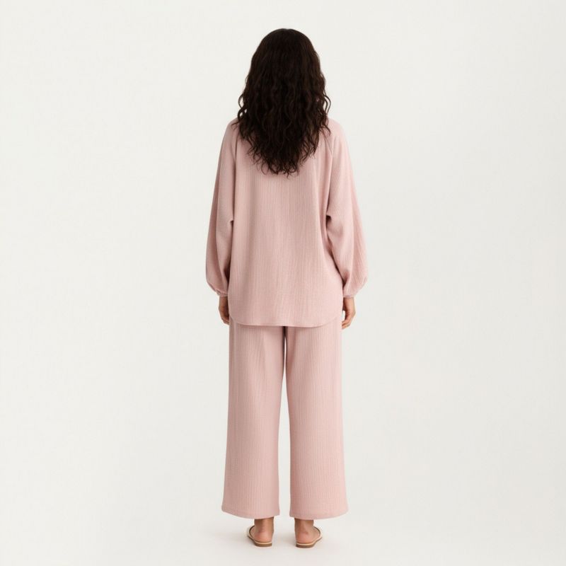 Anna-Kaci Lounge Women's 2-Piece Set Textured Long Sleeve V-Neck Top and Wide Leg Pants - Small, Mauve Pink