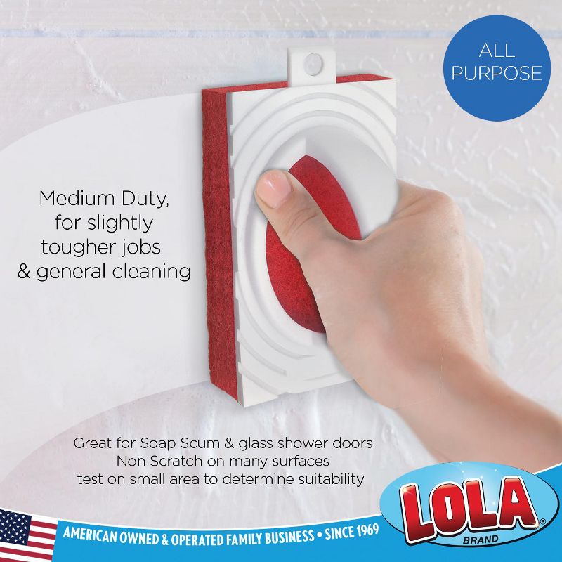 Lola Products All Purpose Scrubber, Medium Duty Fiber Pad, Bath and Tile Scrubber, Grip Handle, Multi-Surface Cleaner, 1 Pack